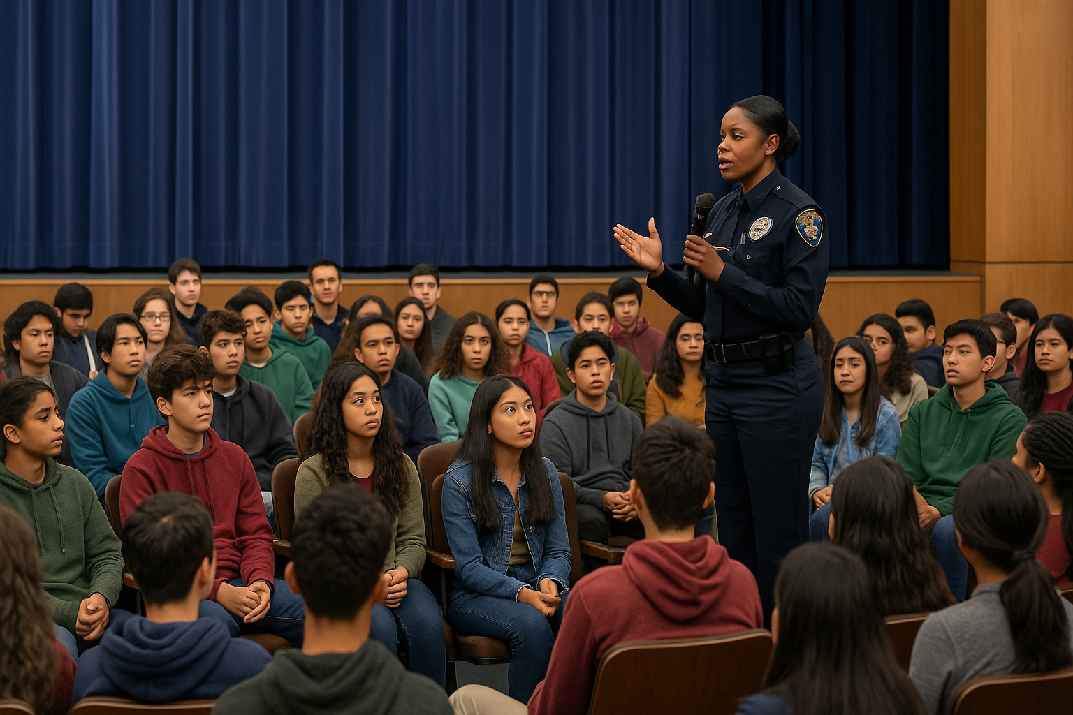 Each presentation encourages open dialogue and real connection between youth and law enforcement. The goal is to equip students with accurate information, promote safe decision-making and create positive interactions that support long-term community well-being.